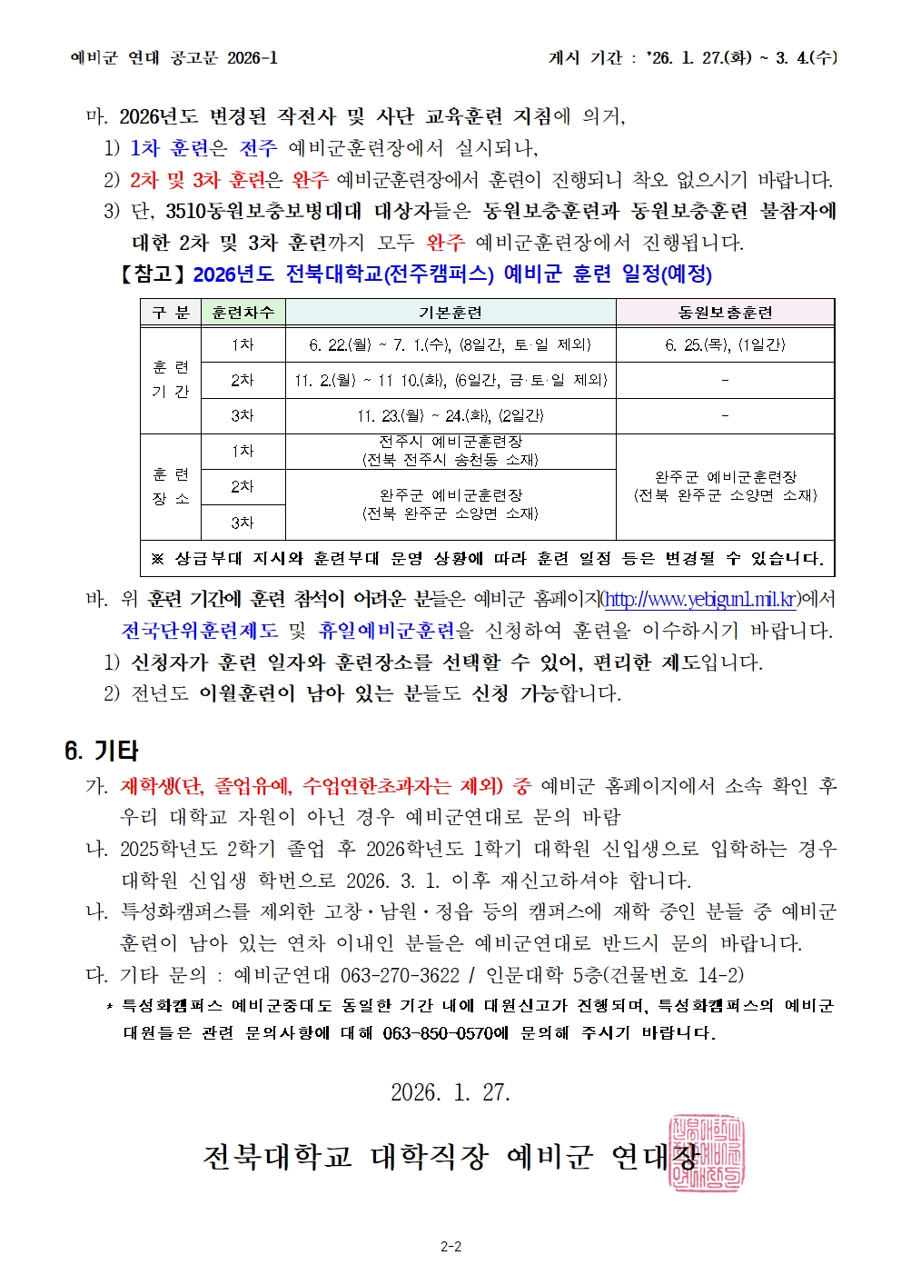 [예비군] 2026학년도 1학기 예비군 대원 신고 안내